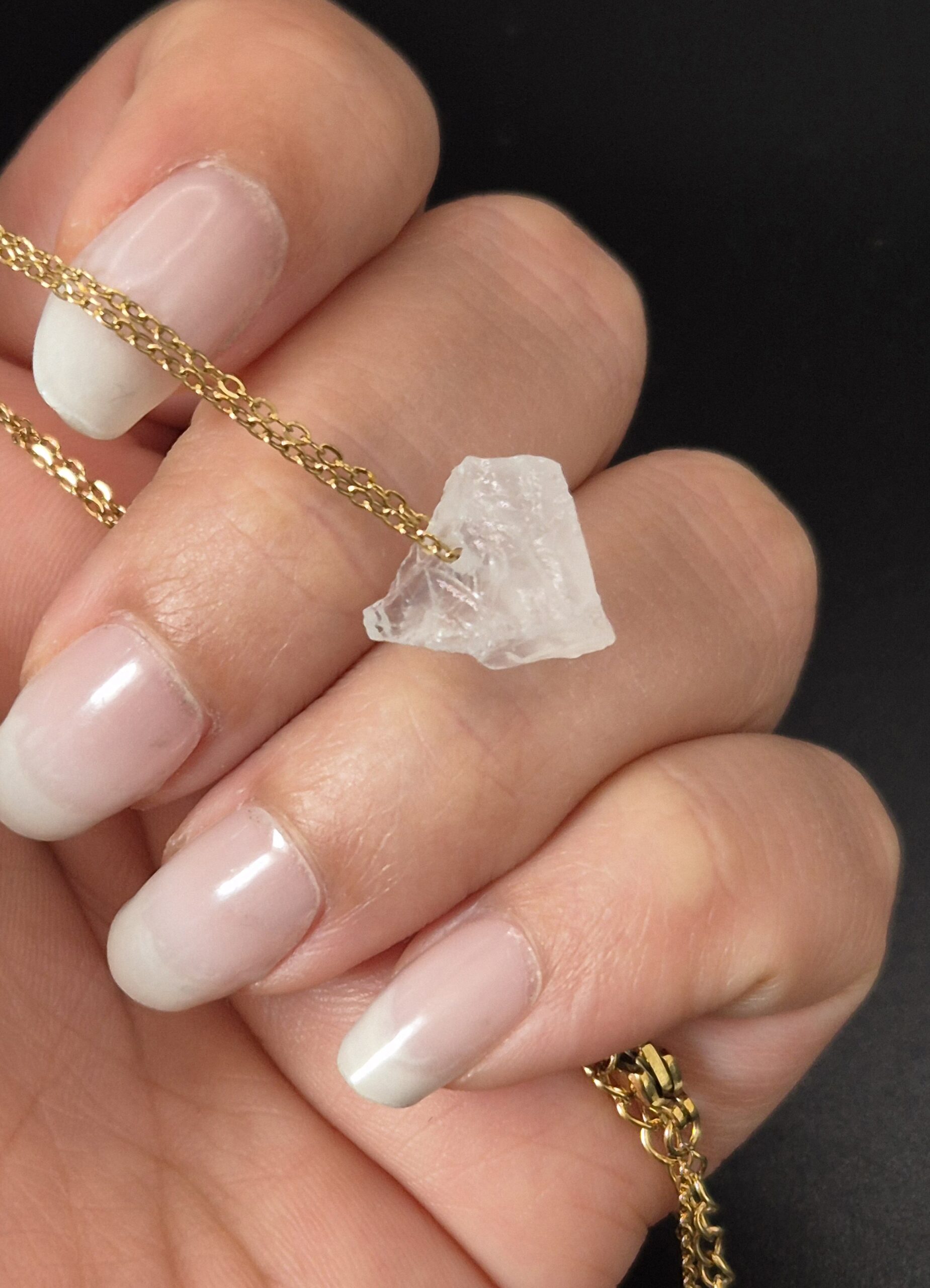 - Stein: Bergkristall, naturbelassen, gebohrt