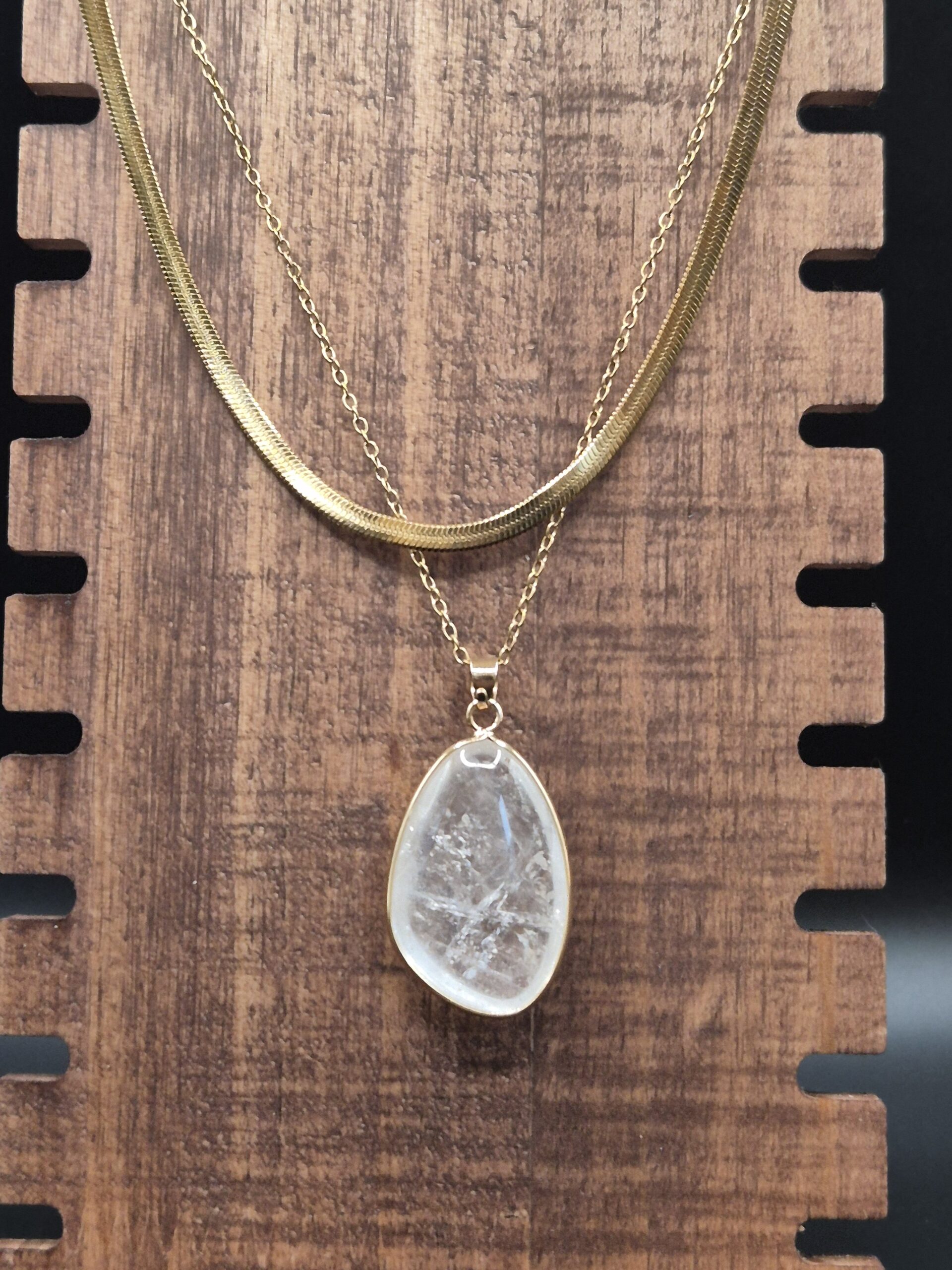 Diese Halskette verbindet einen glatt polierten Bergkristall