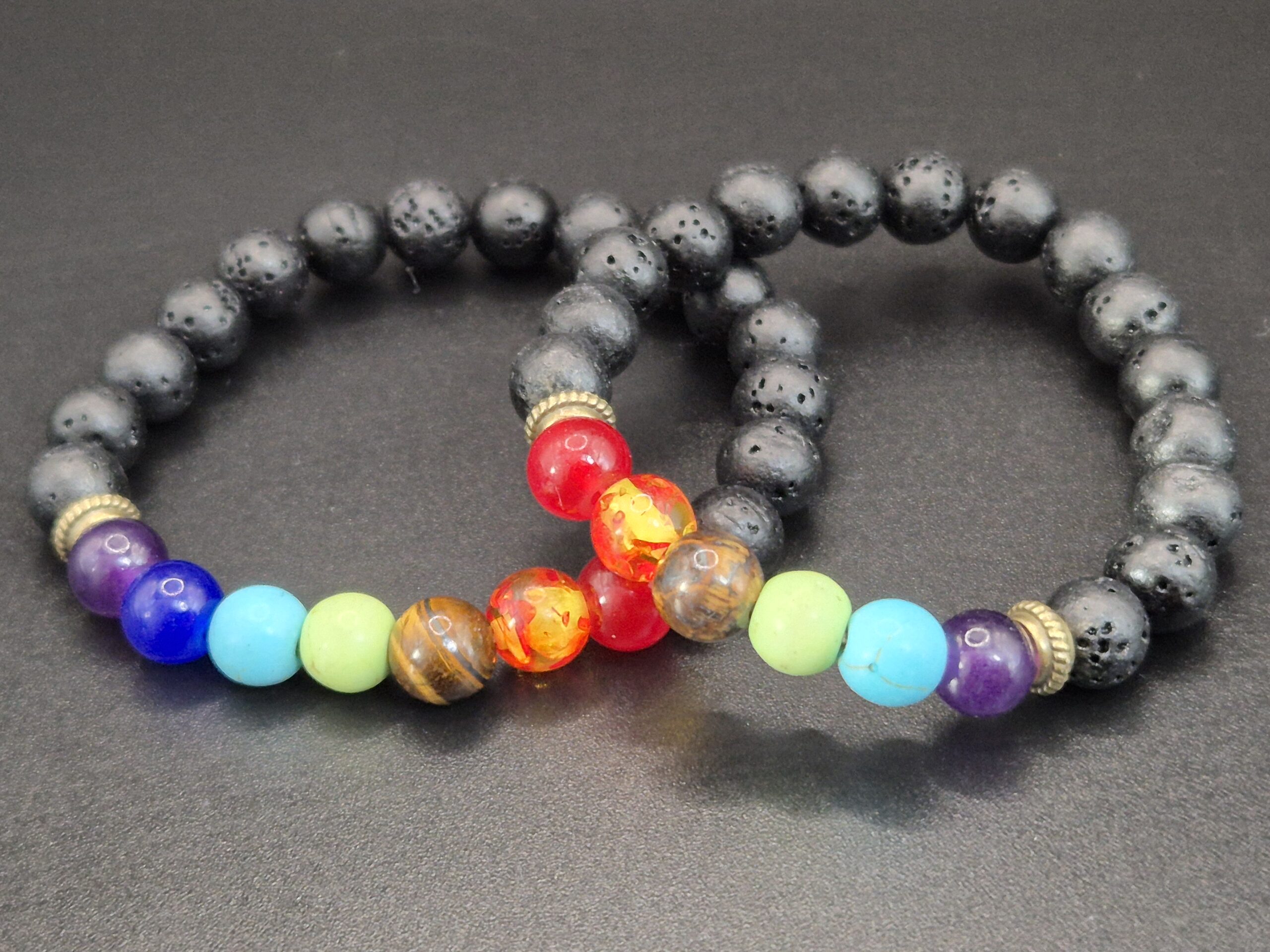 Die Verbindung aus Lavaperlen und Chakren-Glasperlen wird traditionell als